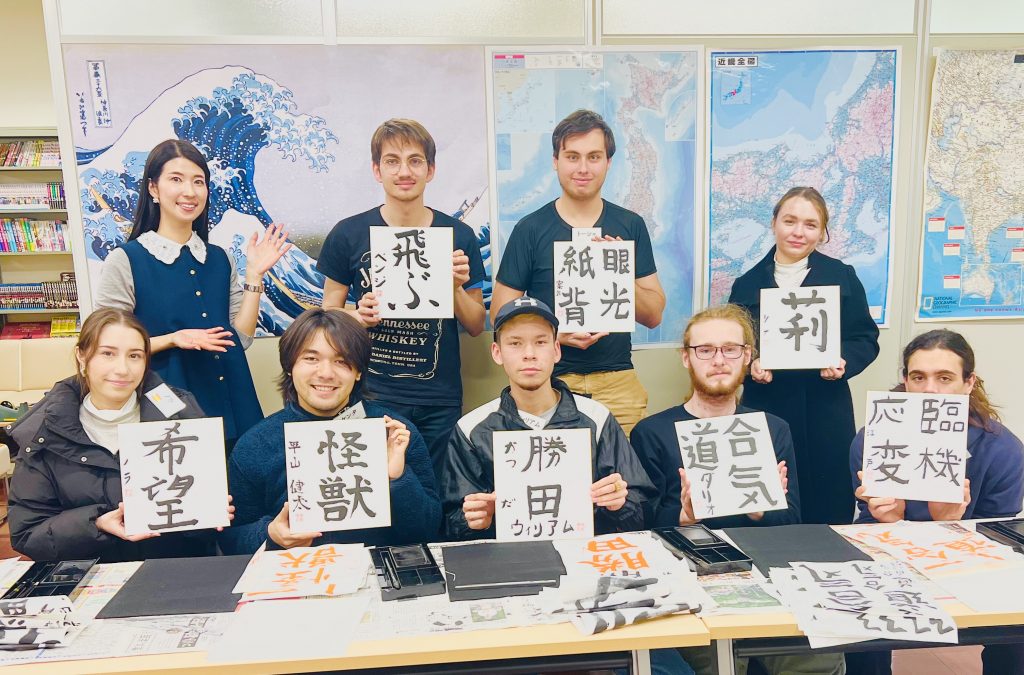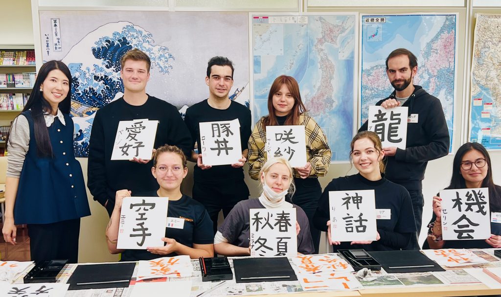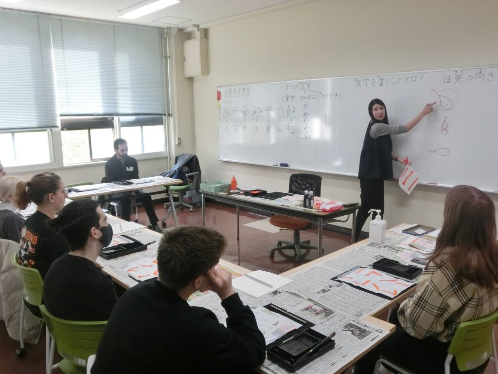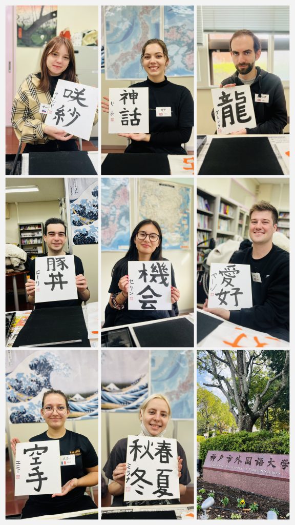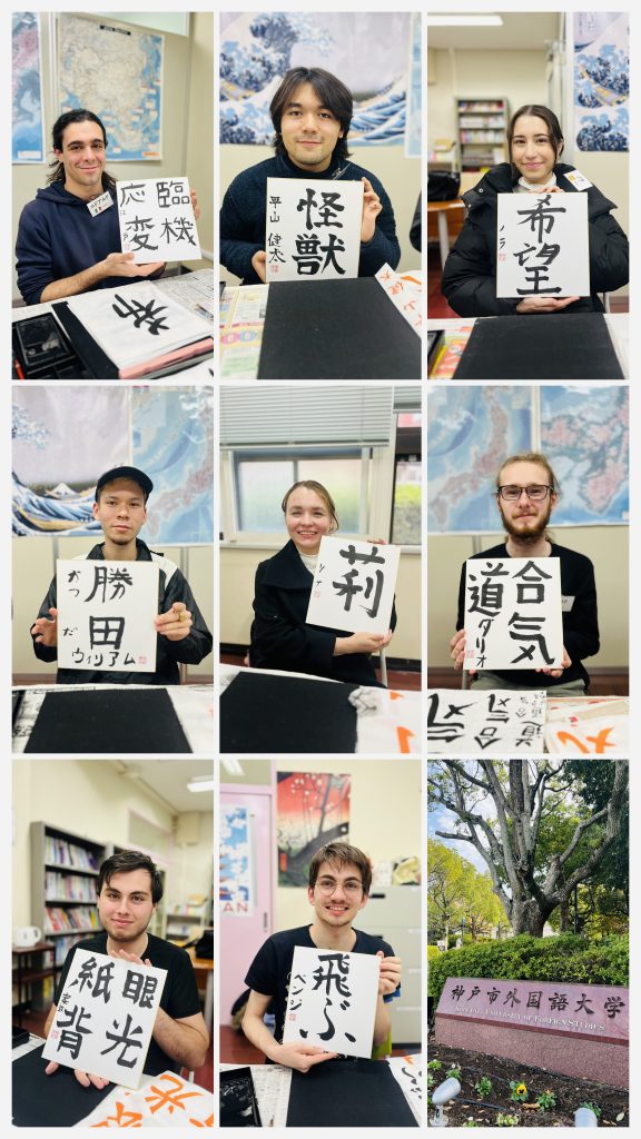 この度、神戸市外国語大学様にて特別講師としてお招き頂き、書道の授業をさせて頂きました。