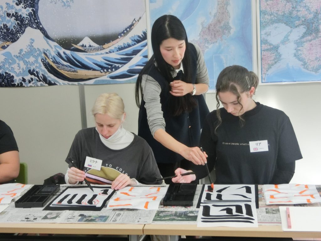 神戸市外国語大学様 書道体験授業
