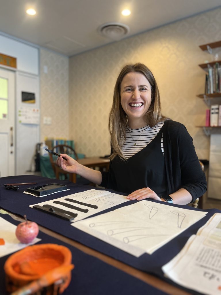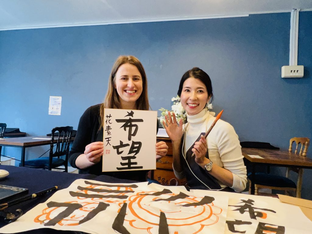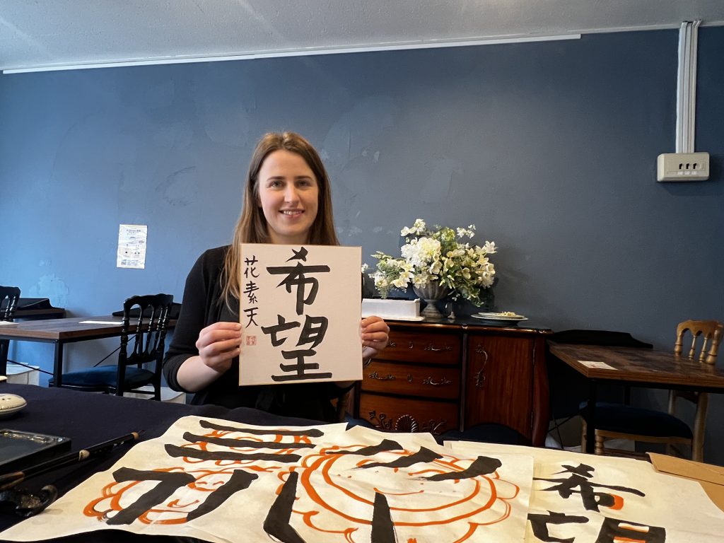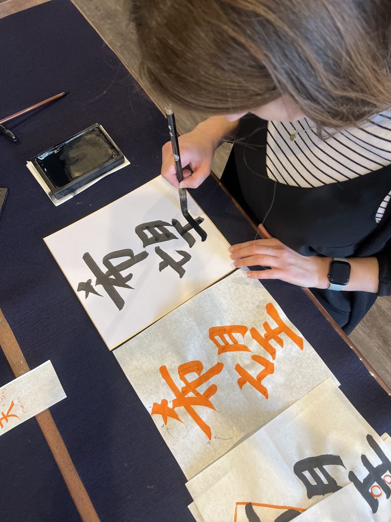 基本点画の練習のあと、本日の作品で書く漢字を何度も練習されました。色紙に清書する緊張の瞬間!