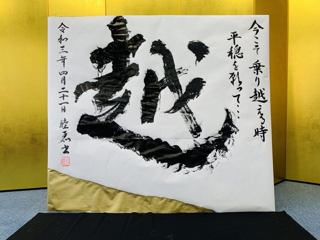 パフォーマンス「越」2024年1月7日2024年1月7日書道パフォーマンス こちらの「越」は、コロナ渦の時に揮毫した作品です。 平穏無事な世の中になることを願い、揮毫させて頂きました。 作品サイズ 160cm×160cm