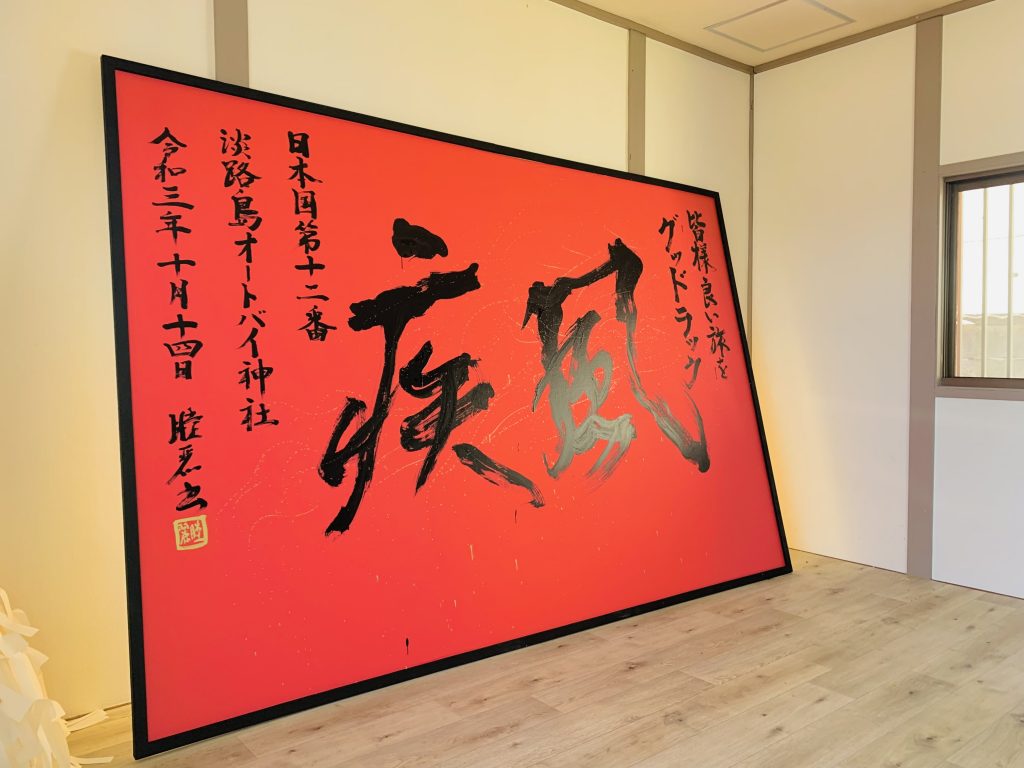 パフォーマンス@淡路島オートバイ神社2024年1月7日2024年1月7日書道パフォーマンス こちらは令和3年10月14日に 淡路島のオートバイ神社が完成したときのセレモニーで パフォーマンスを披露させて頂いた際の様子です。 たくさんの方の前で「疾風」を披露させて頂きました。 今もオートバイ神社で展示して頂いていますので お立ち寄りの際は御覧くださいませ 鎮座式の詳しいレポートはコチラでも御覧頂けます オートバイ神社