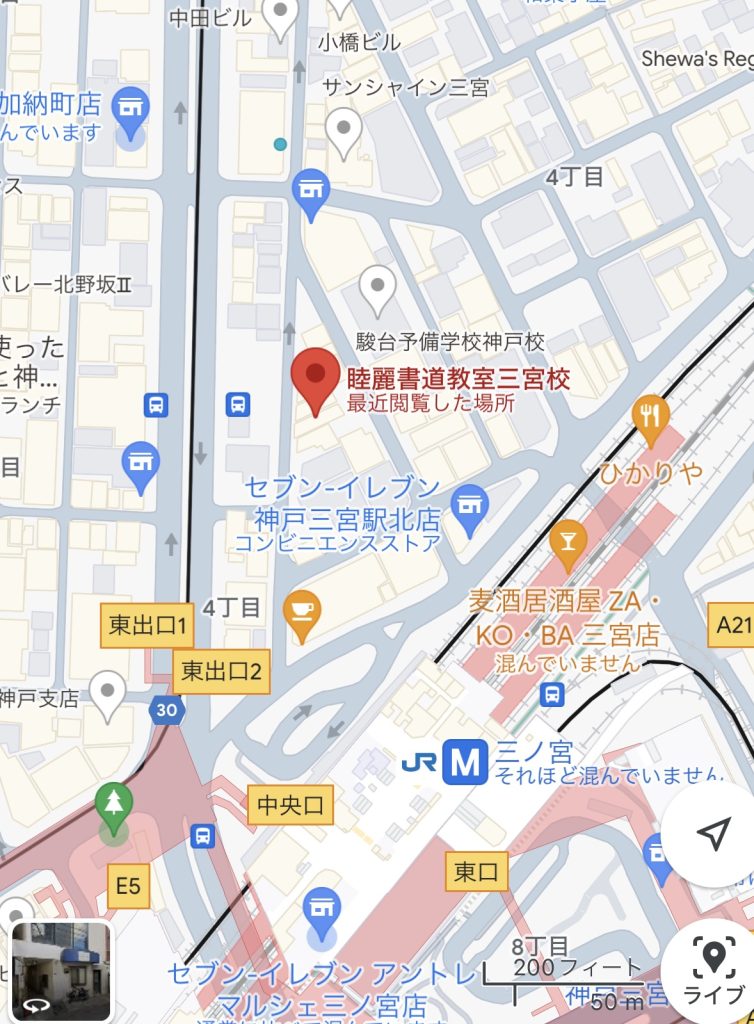 JR三ノ宮駅東口より徒歩1分。お仕事帰りにお立ち寄り頂きやすい教室です♪