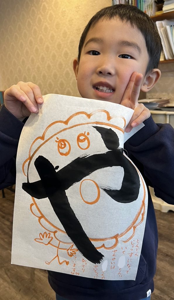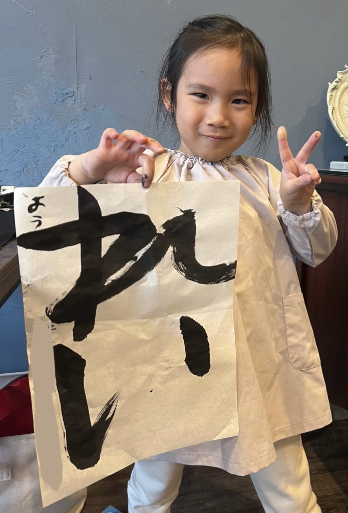 ↑年中児さん。初めての習い事で初めは不安な気持ちがありましたが、来る度に新しい字に挑戦して素敵!