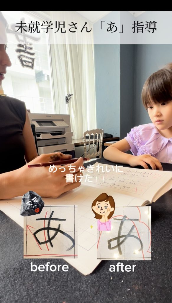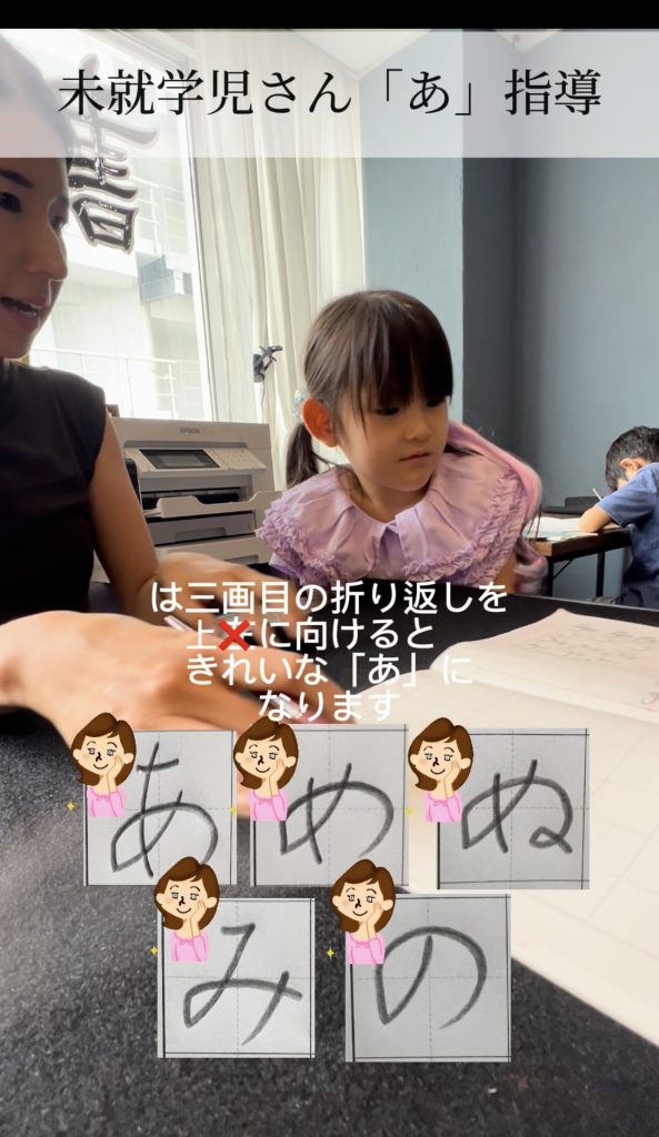 先日ひらがなの「あ」の書き方の指導の様子をリールに投稿したのでご覧ください^^
