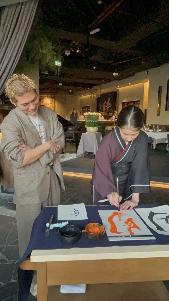 イベント前日にはEXILE のSHOKICHI様に、イベント当日披露して頂く書の指導をさせて頂きました。